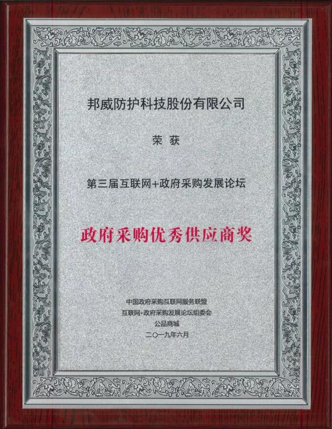 中央相关部委负责人,地方政府采购监管部门、执行机构负责人,行政事业单位采购负责人,行业权威专家,第三方行业机构代表,行业优秀企业代表等150余人参加此次论坛,邦威防护荣获此次论坛颁发的《政府采购优秀供应商奖》!